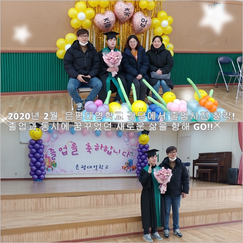 이미루씨가 은평대영학교 강당에서 은평대영학교의 최종단계인 전공과 졸업을 합니다.